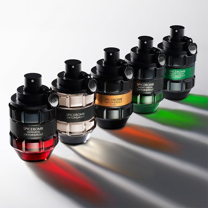 This iconic cologne bottle is an explosive take on the original Spicebomb bottle that takes the vibrant and magnetic red of infrared light and merges it into the black-colored glass. The same red hue is also added to the band around the bottle.